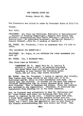 Pages 805-1070 of the verbatim stenotype transcription of the Debates of the 1943-1944 Constitutional Convention of Missouri. These debates spanned from January 5, 1944 - September 29, 1944. The full transcription includes over 7,000 pages.